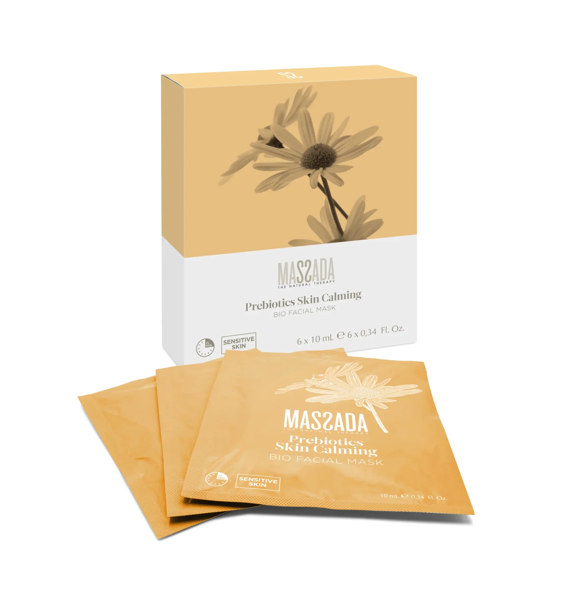 Maska w płacie dająca efekt drugiej skóry, zaprojektowana specjalnie dla skóry wrażliwej w celu zmniejszenia zaczerwienienia i podrażnienia skóry. Prebiotyki pochodzenia morskiego równoważą florę bakteryjną, która działa jak bariera ochronna dla skóry. Kwiatowe ekstrakty od Massady oczyszczają, pozostawiając na twarzy przyjemne uczucie nawilżenia.